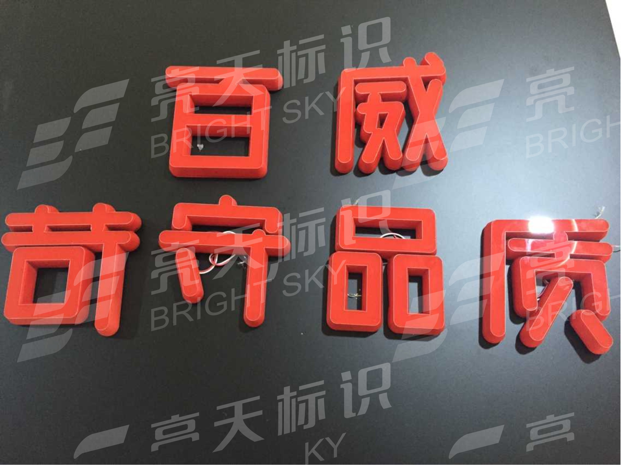 主要特点: 亚克力斜边雕刻,侧面烤漆,面部、底部双面发光。